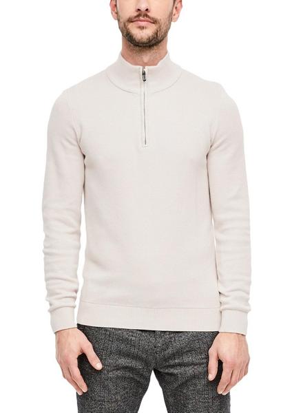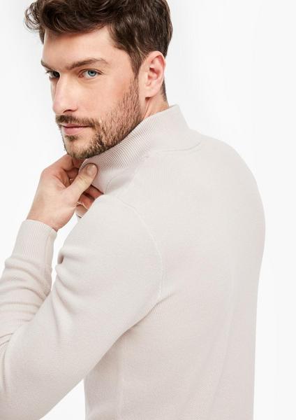 glatter Feinstrickpullover, gerippter Stehkragen mit Reißverschluss, elastische Rippbündchen, Regular Fit; Rückenlänge bei Größe M ca. 72 cm, angenehm leichter Baumwollstrick
