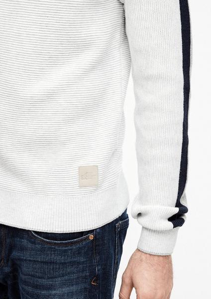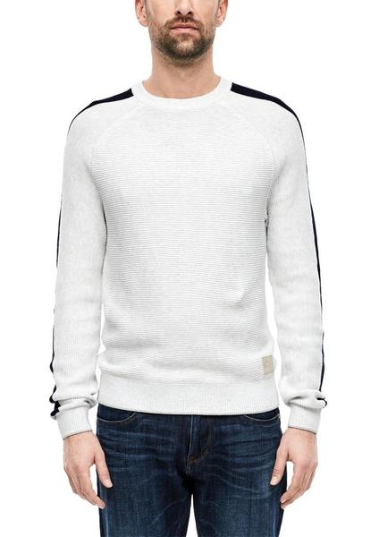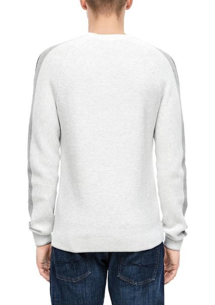 markant gestricktes Strukturmuster, Rippstrick-Blende am Rundhalsausschnitt, Raglanärmel mit zweifarbigem Streifen-Detail, Rippbund mit Kontraststreifen an Arm- und Saumabschluss, Regular Fit; Rückenlänge bei Größe M ca. 71 cm, softe Strick-Qualität aus reiner Baumwolle