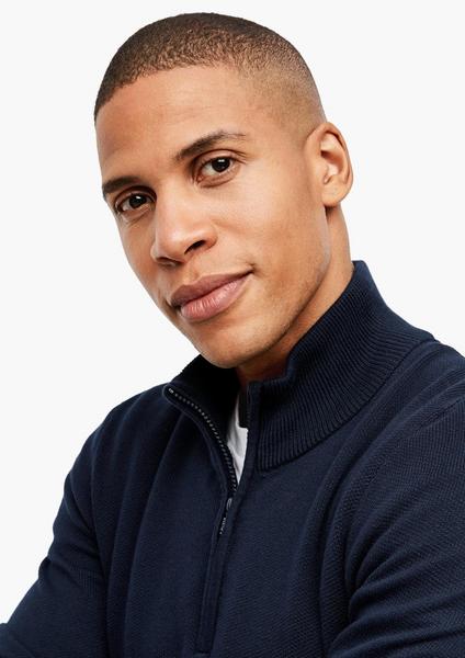glatter Feinstrickpullover, gerippter Stehkragen mit Reißverschluss, elastische Rippbündchen, Regular Fit; Rückenlänge bei Größe M ca. 72 cm, angenehm leichter Baumwollstrick