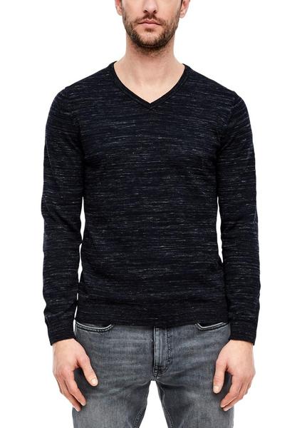 melierte Optik, V-Ausschnitt mit Rippblende, Ärmel- und Saumabschluss mit Rippbund, Regular Fit; Rückenlänge bei Größe M ca. 70 cm, weiche Strick-Qualität aus Baumwollmix