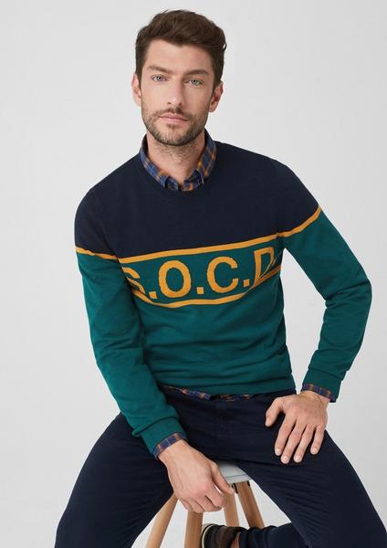 Feinstrick im Colourblocking-Design, Rundhalsausschnitt mit Rippblende, Logo-Wording auf der Vorderseite, elastische Rippbündchen, Regular Fit; Rückenlänge bei Größe M ca. 70 cm, angenehm weiche und leichte Strick-Qualität aus reiner Baumwolle