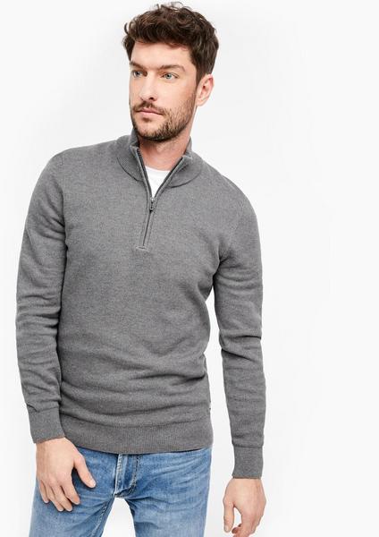 glatter Feinstrickpullover, gerippter Stehkragen mit Reißverschluss, elastische Rippbündchen, Regular Fit; Rückenlänge bei Größe M ca. 72 cm, angenehm leichter Baumwollstrick