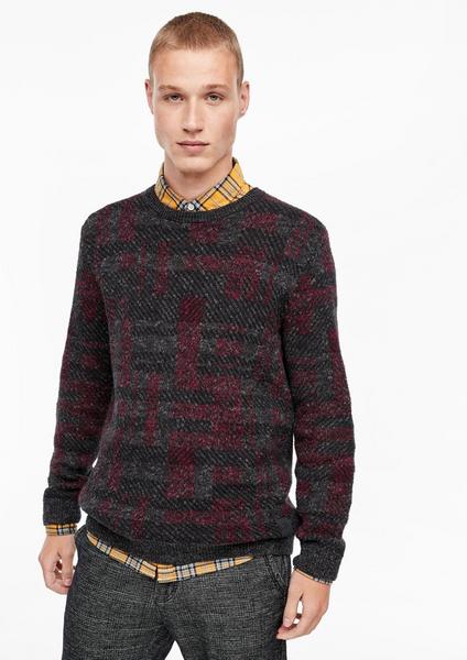 Rundhalsausschnitt mit Rippblende, Jacquard-Strukturmuster allover, elastische Rippbündchen, Regular Fit; Rückenlänge bei Größe M ca. 72 cm, warme Strick-Qualität aus reine Baumwolle,