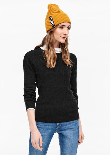 dekorativ geripptes Strickmuster, Rundhalsausschnitt mit Blende, Slim Fit; Rückenlänge bei Größe S ca. 62 cm, besonders weicher Materialmix in elastischer Strickware,