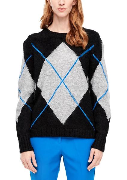 Intarsia-Strick aus softer Wollmischung, Argyle-Muster, Rundhalsausschnitt mit Rippblende, breite Rippbündchen, Regular Fit; Rückenlänge bei Größe 36 ca. 58 cm, kuschelig warme Strick-Qualität mit Wollanteil