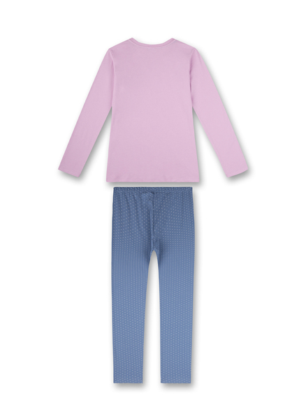 Bequemer Schlafanzug von Sanetta für Mädchen in Lila und einer blauen Leggings im Dots Allover.