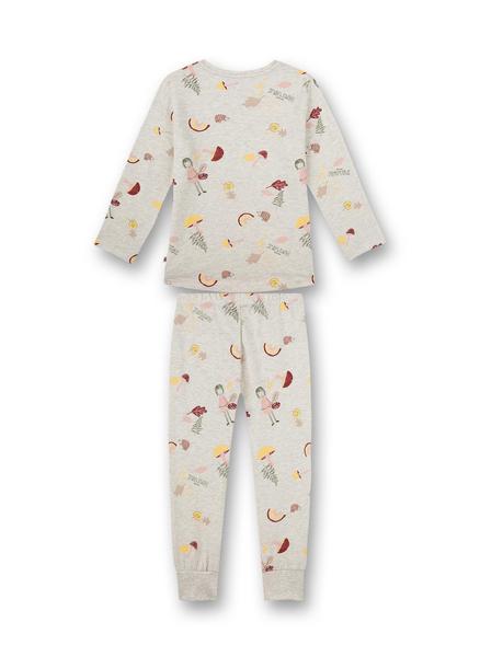 Langer Mädchen-Pyjama von Sanetta in Graumelange von Sanetta mit einem herbstlich inspirierten Alloverprint.