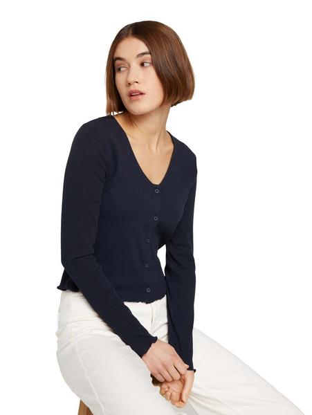 rib cardigan with frilled edge - 10668/Sky Captain Artikel-Nr.: 1030173