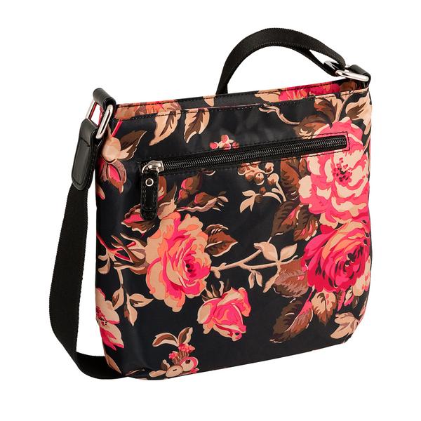 Ein toller Hingucker ist der hübsche neue Rosendruck auf dem Rina-Bestseller-Modell, der sich jeder Garderobe hervorragend angleicht! Das florale Dessin aus besonders leichtgewichtigem Nylon mit vielen Funktionen ist ein unentbehrlicher Partner für jeden Tag! Umhängetasche mit Reißverschlussöffnung am Hauptfach, 1 Überschlagtasche auf der Vorderseite mit Magnetverschluss und Reißverschluss unter dem Überschlag, 1 Reißverschlussrückfach, innen 1 Reißverschlussfach, 1 Smartphone-Fach, 1 langer verstellbarer Schulterriemen.