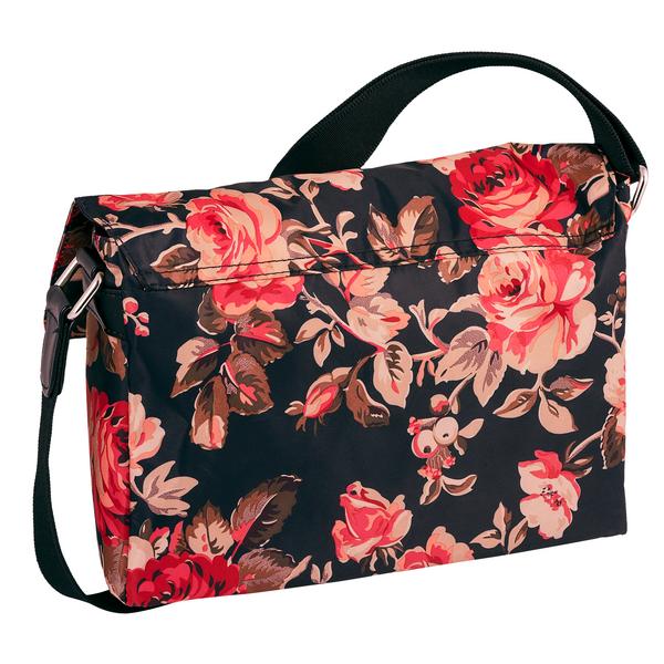 Ein toller Hingucker ist der hübsche neue Rosendruck auf dem Rina-Bestseller-Modell, der sich jeder Garderobe hervorragend angleicht! Das florale Dessin aus besonders leichtgewichtigem Nylon mit vielen Funktionen ist ein unentbehrlicher Partner für jeden Tag! Überschlagtasche mit Metall-Reißverschlusstasche auf dem Überschlag und 2 Magnetverschlüssen und 2 Vortaschen mit Reißverschlussöffnung unter dem Überschlag, innen 1 Reißverschlussfach, 1 Smartphone-Fach, 1 langer verstellbarer Schulterriemen.