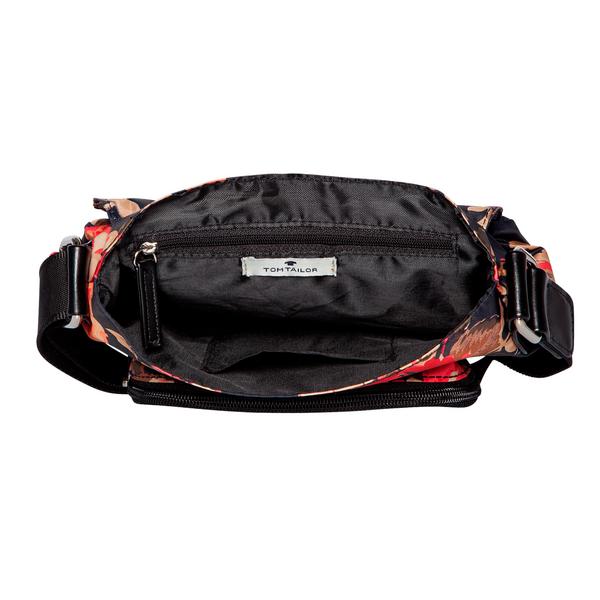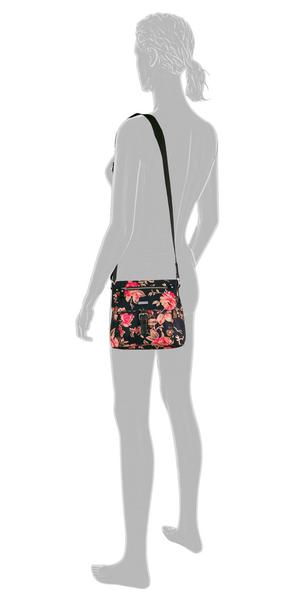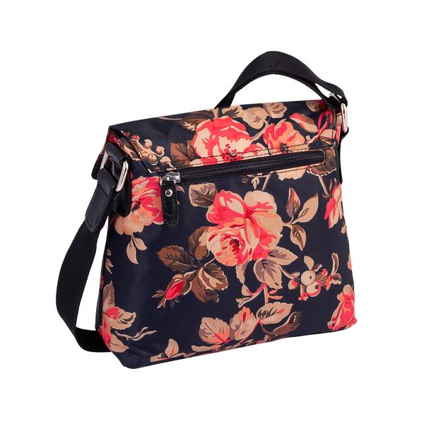 Ein toller Hingucker ist der hübsche neue Rosendruck auf dem Rina-Bestseller-Modell, der sich jeder Garderobe hervorragend angleicht! Das florale Dessin aus besonders leichtgewichtigem Nylon mit vielen Funktionen ist ein unentbehrlicher Partner für jeden Tag! Überschlagtasche mit Metall-Reißverschlusstasche auf dem Überschlag und Magnetverschluss und Vortasche mit Reißverschlussöffnung unter dem Überschlag, 1 Reißverschlussrückfach, innen 1 Reißverschlussfach, 1 Smartphone-Fach, 1 langer verstellbarer Schulterriemen.