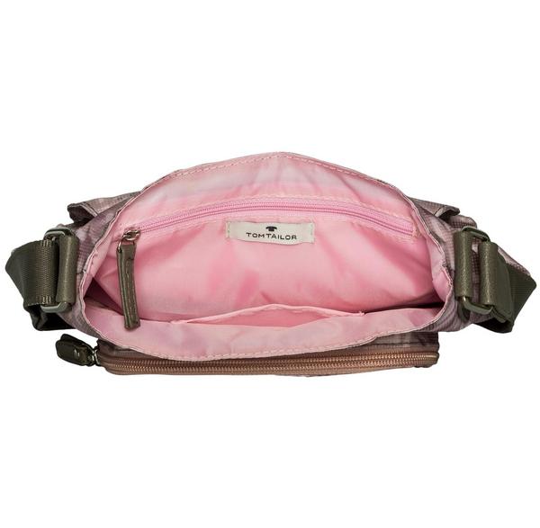 Praktische Überschlagtasche aus leichtgewichtigem Nylon mit feinem Logo-Allover-Druck von Tom Tailor bags. Sie besitzt eine Metall-Reißverschluss-Vortasche auf sowie eine Reißverschlusstasche unter dem Überschlag, des Weiteren eine Reißverschlusstasche auf der Rückseite der Tasche. Der längenverstellbare Schultergurt ist aus weichem Gurtband, das für angenehmen Tragekomfort sorgt. Auch innen punktet das pflegeleichte Modell mit insgesamt drei Verstaumöglichkeiten. Überschlagtasche mit 1 Reißverschlussfach auf dem Überschlag sowie Magnetverschluss und 1 Reißverschlussfach unter dem Überschlag, 1 Reißverschlussrückfach, innen 1 Reißverschlussfach und 1 Smartphone-Fach, 1 langer verstellbarer Schulterriemen.