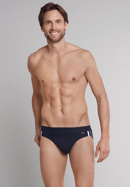 Ein maskulines Design trifft bei diesem dunkelblauen Herren-Rio-Slip auf eine perfekte Passform! Die seitlichen Zierstreifen in Weiß und Grau schenken der Unterhose dezente Details, die sich eingebettet in elastischem Single Jersey angenehm weich auf der Haut anfühlen. Mit 95% feiner Baumwolle und 5% Elastan ist der Slip besonders komfortabel und sitzt vom ersten Moment an perfekt. Ein stilvolles Wäsche-Basic in bester SCHIESSER-Qualität! Auch in großen Größen erhältlich!