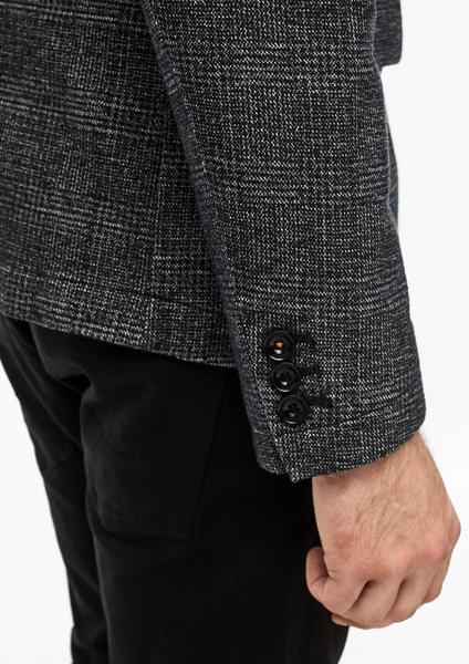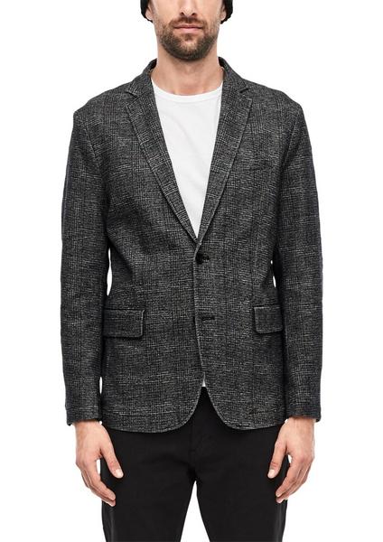 Webmuster im Herringbone-Style, klassischer Look mit Reverskragen und Knopfleiste, eine Brustleistentasche, zwei Pattentaschen, eine Innentasche, innen mit extra Lasche für Earphones, ein Rückenschlitz am Saumabschluss, Regular Fit; Rückenlänge bei Größe M ca. 74 cm, elastische Baumwoll-Qualität; teilweise mit gemustertem Taftfutter