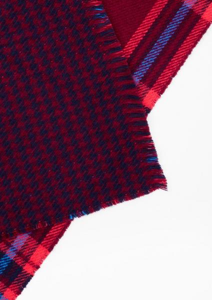 buntes Karo-Webmuster, kurze, feine Fransen an den Enden, Maße L x B (cm) ca. 200 x 50, weiche, flauschige Webware