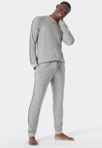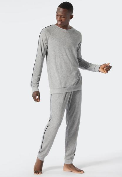 Dieser lange, ultrasofte Herrenschlafanzug aus hochwertigem Frottee ist ein Traumduo für erholsame, warme Nächte. Durch den hohen Modalanteil ist der Stoff saugfähig, atmungsaktiv und schnelltrocknend. Die Hose mit Bindeband und Bündchen ergänzt das Langarmshirt mit Rundhalsausschnitt perfekt. Noch ein Pluspunkt sind die optischen Details: Zwei modische Streifen an den Ärmeln und Beinen sorgen für einen modischen Look. Für alle, die Funktionalität, Komfort und beste SCHIESSER-Qualität mögen!