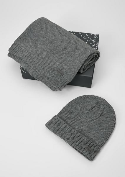 Set bestehend aus Mütze und Schal aus feinem Rippstrick, Mütze mit grob geripptem Umschlag, Schal mit grob gerippten Abschlüssen, Maße des Schals L x B (cm) ca. 175 x 30, weiche Strick-Qualität, Kommt in weihnachtlicher Geschenk-Box!