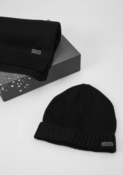 Set bestehend aus Mütze und Schal aus feinem Rippstrick, Mütze mit grob geripptem Umschlag, Schal mit grob gerippten Abschlüssen, Maße des Schals L x B (cm) ca. 175 x 30, weiche Strick-Qualität, Kommt in weihnachtlicher Geschenk-Box!
