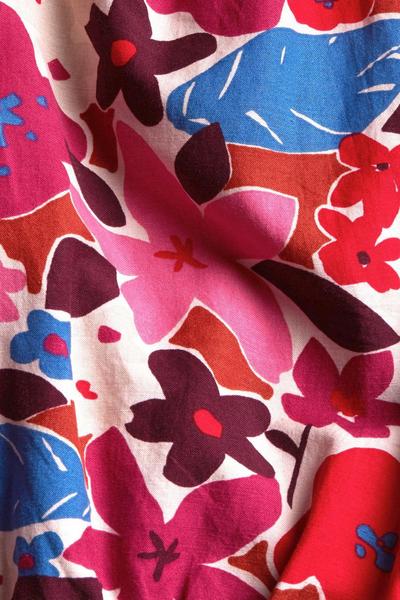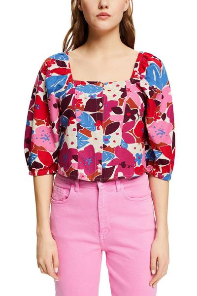 * Webstoff aus Baumwoll-Mix mit Viskose und Leinen * Plakatives Blumenmuster * Karree-Ausschnitt auf Vorder- und Rückseite * Durchgehende Knopfleiste * Weite Ärmel mit Gummizugbündchen * Verkürzter, kastiger Schnitt