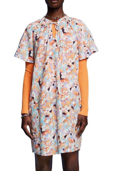 * Webstoff aus reiner Baumwolle * Strukturierte Optik * Florales Muster * Geschlitzter Ausschnitt mit Schleifendetail * Kurze Raglanärmel * Weite Passform * Mini-Länge