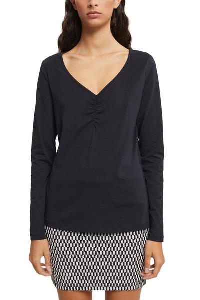 * Jersey aus organischer Baumwolle mit Elasthan * V-Aussschnitt * Kräuseldetails am Vorderteil * Slim Fit