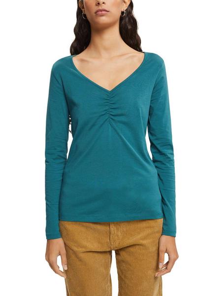 * Jersey aus organischer Baumwolle mit Elasthan * V-Aussschnitt * Kräuseldetails am Vorderteil * Slim Fit