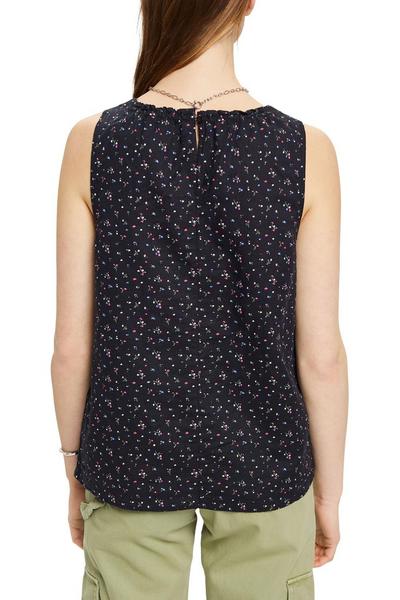 * Aus Leinen und Baumwolle * Blümchen-Print allover * Gerüschter Rundhalsausschnitt mit Knopf und Tropfenverschluss im Rücken * Lockerer Oversize-Schnitt