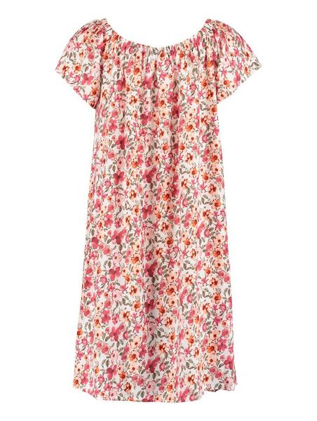 Kurzes Viskose-Kleid mit lockerer Passform und Rundhalsausschnitt mit Gummizug.