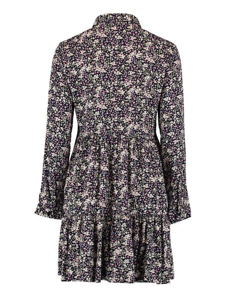 Viskose-Kleid mit Hemdkragen, Knopfleiste und Volants.
