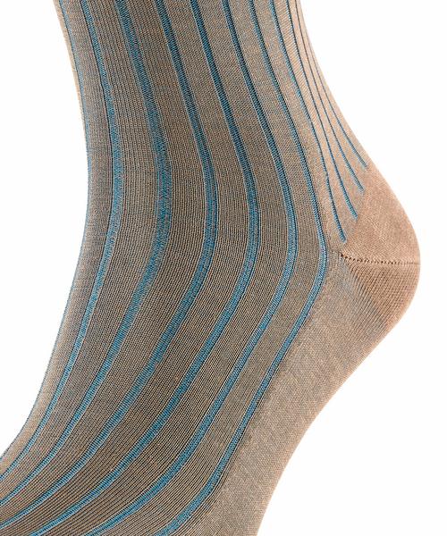 Eleganter, dezent gemusterter Businessstrumpf aus merzerisierter Baumwolle, bei dem die zweite Farbe im Schatten (engl. Shadow) der eigentlichen Farbe steht. Die druckfreie Spitze entsteht durch die von Hand gekettelte Naht. Verstärkte Belastungszonen gewährleisten eine optimale Haltbarkeit. Der Strumpf ist pflegeleicht.