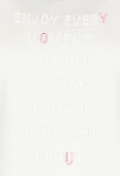Ein cooles Rundhals-Basic mit Styling-Potenzial von monari. Angesagte Akzente werden durch ein toniges 3-D-Wording mit glänzenden, gestickten Buchstaben auf der Vorderseite gesetzt. Die Form: gerade geschnitten mit angedeutetem, überschnittenem Kurzarm und Bündchen an den Ärmelenden. Der Mix aus Baumwolle und Modal verspricht ein wohliges und sehr hochwertiges Tragegefühl für jeden Tag. Seien Sie gespannt!