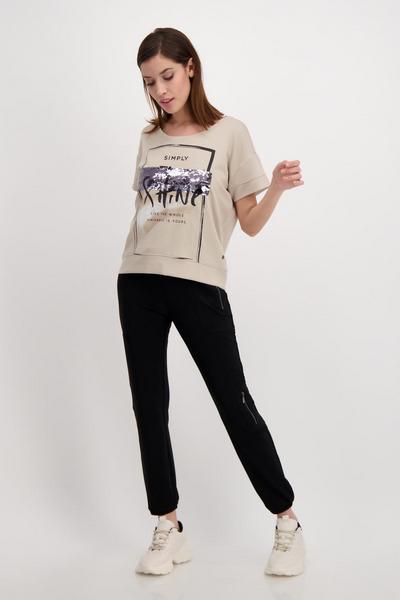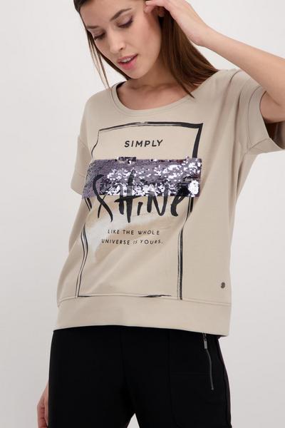 Die gleichmäßige und stilvolle Optik dieses Viskose-Mix-Shirts von monari fühlt sich angenehm auf Ihrer Haut an und verspricht dank des Stretchanteils einen tollen Tragekomfort. Der Fit: gerade geschnitten mit einem Rundhals, Ärmelenden mit breiten Bündchen und einer Querteilungsnaht, überschnittene Schultern und ein Saum mit breitem Bündchen. Coole Schrift und glitzernde Pailletten-Details werden von Lackdruck umrahmt und schmücken die Vorderseite des angesagten Modells. Strahlen Sie mit Ihrem neuen Halbarm-Jersey-T-Shirt.