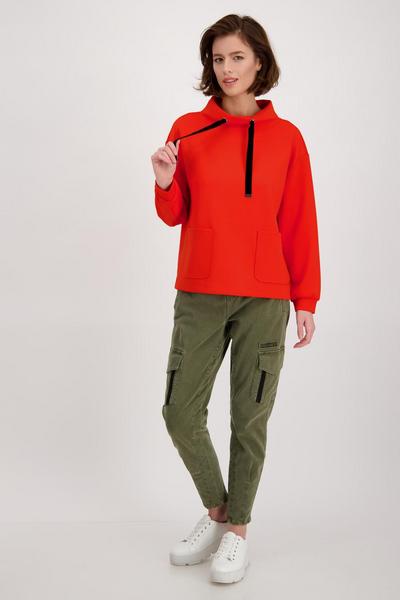 Der legere Langarm-Sweater von monari kommt in weicher Wohlfühl-Qualität mit Stretchanteil und einer femininen Optik. Regular Fit mit Stehkragen, Ärmelenden mit Bündchen und Kräuselung und überschnittener Schulter. Zwei aufgesetzte Taschen und die Samtbänder am Kragen schmücken die Vorderseite gekonnt. Setzen Sie ein modisches Statement mit diesem angesagten It-Piece.