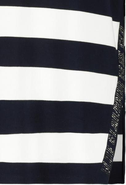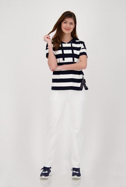Neues monari Update für einen Klassiker! Mit gerader Form, unifarbener Kapuze mit Teilungsnähten, Tunnelzug, Ringösen und Bindeband sowie einem Halbarm mit überschnittenen Schultern. Die Vorderseite des Jersey Shirts mit einem großen Schlitz mit unifarbener, funkelnder Blende mit Strass geschmückt. Der Allover-Ringel Stil und die Qualität aus fließendem Viskose-Mix mit Stretch verleiht Ihren Looks nichts nur das gewisse Etwas, sondern sorgt für einen wohligen Komfort und ein zu 100% angenehmes Tragegefühl. Worauf warten Sie noch. Kombinieren Sie zu Ihrer Lieblingsjeans!
