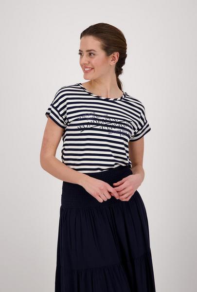 Das Jerseyshirt von monari ist ein wahrer Hingucker. Mit einem Allover-Querringel Muster und einer durch Glitter und funkelnder Strassschrift verzierten Vorderseite überzeugen Sie auf ganzer Linie. Der Fit: gerade geschnitten mit Rundhals und angedeuteten, überschnittenem Kurzarm mit Längsstreifen Bündchen an den Ärmelenden. Zögern Sie nicht und bereichern Sie Ihre Garderobe mit diesem lässigen T-Shirt aus fließendem Viskose-Mix mit Stretchanteil.