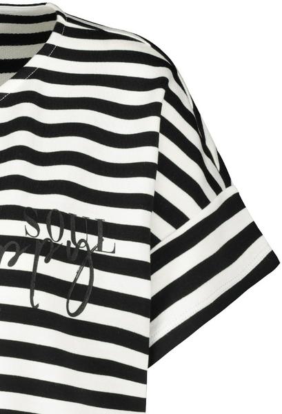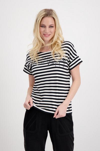 Die Strass- und Lackschrift dieses monari Shirts ist mit einem modischen Allover-Ringel-Design unterlegt. Die gerade Form mit angedeutetem, überschnittenem Kurzarm macht Ihren Look feminin und sportiv zugleich. Viskose und Modal im Mix bedeuten komfortable Trageeigenschaften für den ganzen Tag. Inspirieren Sie Ihre Mitmenschen mit diesem kombistarken It-Piece!