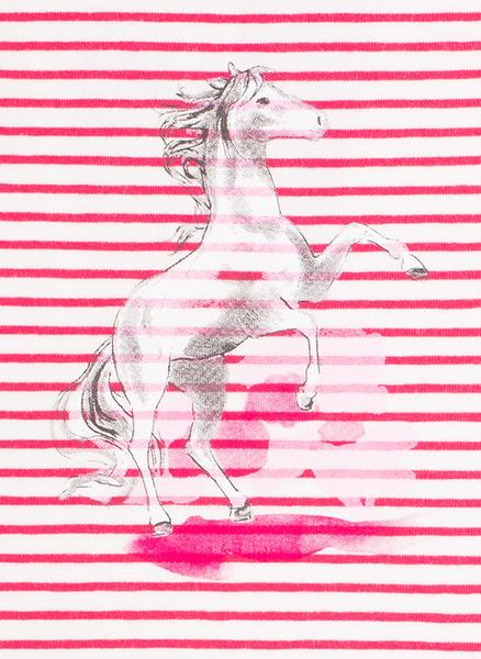 Geringeltes Unterhemd in kräftigem Pink mit imposantem Pferdeprint von Sanetta.