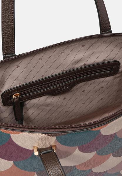 Ganz auf die Wirkung eines modernen Prints mit übereinanderliegenden Kreisen setzt das Design der Geldbörse JANELA. Goldfarbene Details, ein Logo und ein Außenfach für Dinge, die schnell griffbereit sein sollen, zeichnen das modische Accessoire aus. Das Hauptfach ist mit einem Reißverschluss versehen. Innen bieten Steckfächer, Scheinfächer, ein Netzfach und Kreditkartenfächer Geld und Karten ihren festen Platz. Das Mittelfach nimmt Kleingeld oder Schlüssel auf.