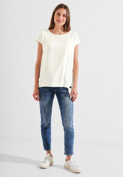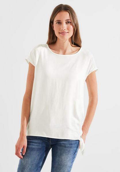 Vielseitig und leicht! Die Damenbluse von CECIL mit überschnittenen Schultern, Knotendetail am Saum und Rundhalsausschnitt überzeugt in leichter Viskose. Sie ist ein Allrounder für sommerliche Tage und passt gleichermaßen gut zu Röcken, Shorts und Jeans. Ein neues Lieblingsteil im Kleiderschrank!