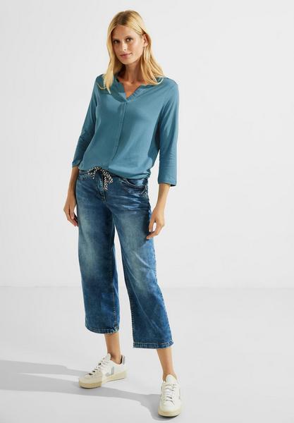 Lässige Eleganz! Das Damen T-Shirt mit 3/4 Arm von CECIL mit geschlitztem Rundhalsausschnitt, Elastiksaum und dekorativer Fake-Knopfleiste ist ein absolutes Highlight. Aus angenehmer Baumwoll-Modal-Qualität bietet es hohen Tragekomfort und verleiht jedem Look eine modische Note.