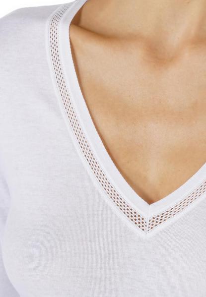 * Schmale Passform * Tiefer V-Ausschnitt * Mit elastischer Häkelspitze * Langarm * Ohne auftragende Seitennähte * Natürliches Tragegefühl * Maschinenwäsche bei 95° C, Trockner geeignet