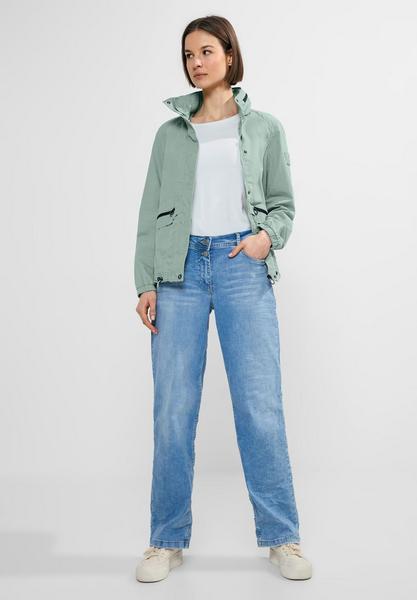 Die sportive Übergangsjacke von CECIL wird dich begeistern. Sie ist ein vielseitiger Begleiter für Damen und bietet Schutz vor unerwarteten Wetterumschwüngen. Dank ihrer verstaubaren Kapuze im Stehkragen und dem Tunnelzug im Saum sorgt sie für Komfort und Style in jeder Situation. Baumwollmix-Jacke Verstaubare Kapuze im Stehkragen Verschließbare Taschen Tunnelzug im Saum Innenfutter Print auf der Innentasche Material: 70% Baumwolle, 30% Nylon