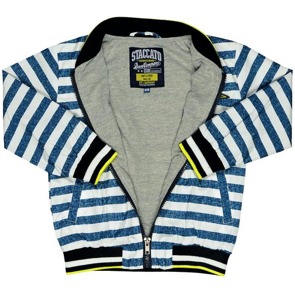 Auch bei Wind und Wetter stets cool unterwegs. Diese Outdoor Jacke von STACCATO präsentiert sich im modischen Streifendesign und individuellen Farbkombinationen. Die gestreiften Rippbündchen an Ausschnitt, Ärmeln und Saum erinnern an den Stil der angesagten Bomberjacken. Für besten Tragekomfort sorgt die reine Baumwollqualität des Unterstoffs. Vor Wind und Wasser schützt die praktische Oberseite. Ein reflektierender Patch auf der Rückseite hilft bei der Sicherheit im Straßenverkehr. Seitliche Einstecktaschen und der große, farbige Print auf der Rückseite runden den Look trendig ab.