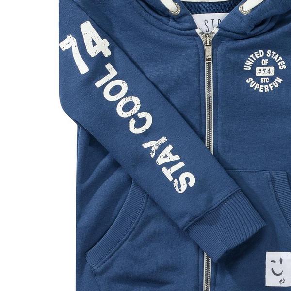 Diese coole Sweatjacke überzeugt mit ihrem sportlichen Design. Das Highlight der Jacke ist der auffällige Print am Arm. Die Rippbündchen garantieren einen bequemen Sitz und der Stoff aus einem weichen Baumwollmix schmiegt sich angenehm an die Haut. Details: kontrastierter Reißverschluss und Zierkordeln, geteilte Kängurutaschen, Front-Print, Kapuze.