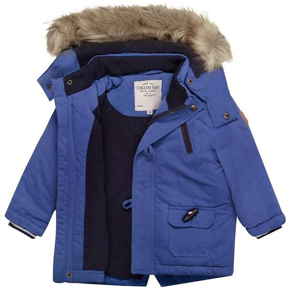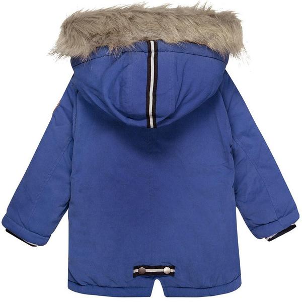 Diese Jacke für Jungen begeistert durch eine stilvolle Optik. Das Design präsentiert sich mit aufgesetzten Knöpfen und Taschen auf der Vorderseite. Der Patch am Ärmel und die kontrastfarbenden Stoffeinsätze an der Kapuze runden in Kombination mit dem abnehmbaren Fake-Fell Kragen den Look harmonisch ab. Die kuschelige Innenseite hält dazu angenehm warm. Details: Reißverschluss mit Kinnschutz, Knopfleiste über dem Reisverschluss.