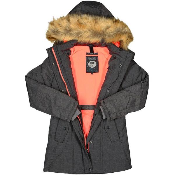 Dieser angesagte Mädchenparka von STACCATO ist ein modischer Hingucker und überzeugt durch zahlreiche Details. Das wind- und wasserabweisende Obermaterial und das wärmende Futter sorgen für einen optimalen Tragekomfort bei Outdoor Aktivitäten. Um auch den modischen Ansprüchen Ihrer Kids gerecht zu werden, überzeugt diese Jacke mit coolen Patches und Farbkontrasten an den Reißverschlüssen. Die Kapuze mit einem Kunstfellkragen lässt sich einfach per Druckknopfleiste abnehmen. Details: taillierter Schnitt, Stehkragen, abnehmbare Webpelzbesatz an der Kapuze, schließt mit verdecktem Reißverschluss mit Kinnschutz und Druckknopfleiste, Eingrifftaschen mit Patten und Druckknopf, Label-Stitching und Patches auf Brusthöhe, teilgefüttert mit Fleece, Rippbündchen an den Ärmeln, Reflektionselemente für eine bessere Sichtbarkeit im Dunkeln.