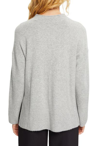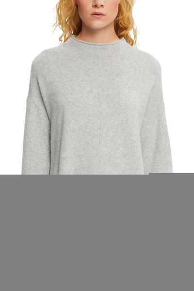 * Pflegeleichter Material-Mix mit hochwertiger Wolle * Kleiner Stehkragen * Überschnittene Schultern mit tiefer angesetzten Ärmeln * Gerippte Abschlüsse * Gerader Schnitt mit High-Low-Saum