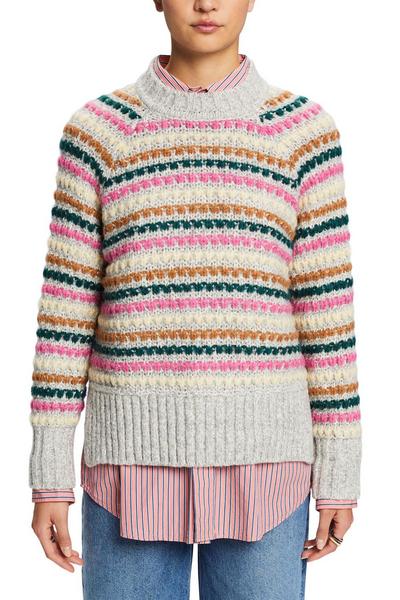 * Schwerer Strick aus Baumwollmix mit Wolle * Farbenfrohes Streifenmuster * Rundhalsausschnitt * Raglanärmel * Gerippte Abschlusskanten * Seitliche Schlitze am Saumabschluss * Gerade Silhouette