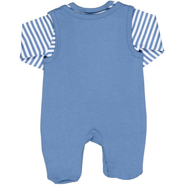 Diese Kombination aus Strampler und Shirt sollte in Ihrer Baby-Erstausstattung nicht fehlen! Die bequeme und weiche Materialqualität aus 100% Baumwolle ist besonders hautfreundlich und daher Ideal für Babys und Neugeborene. Versehen mit einer süßen Applikation und einem Streifenmuster wird er schnell zum neuen Lieblingsteil. Druckknöpfe an der Schulter sowie an der Schrittnaht erweisen sich als großartige Hilfe beim An- und Ausziehen. Details: ab Gr. 44 erhältlich, Patch am Ärmelsaum. Das Set ist in mehreren Farben erhältlich.