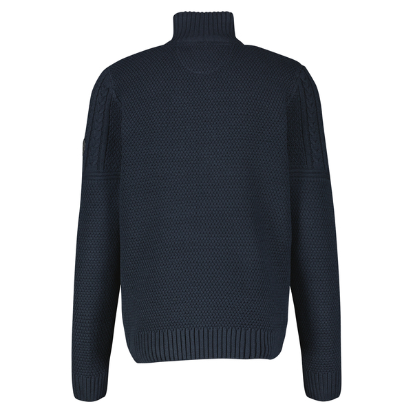 Strickpullover von LERROS in modisch, lebendigem Design mit geripptem Troyerkragen und Saumabschlüssen. Die unterschiedlichen Strickstrukturen - untere Front vertikal gerippt, Brust- und Schulterpartie mit Zopfstrickmuster - aus nachhaltig produzierter Baumwolle runden den sportiven Style perfekt ab.